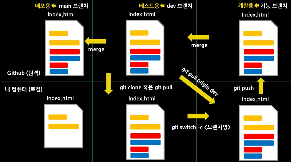 git switch -c 브랜치이름 (= git checkout -b 브랜치이름)