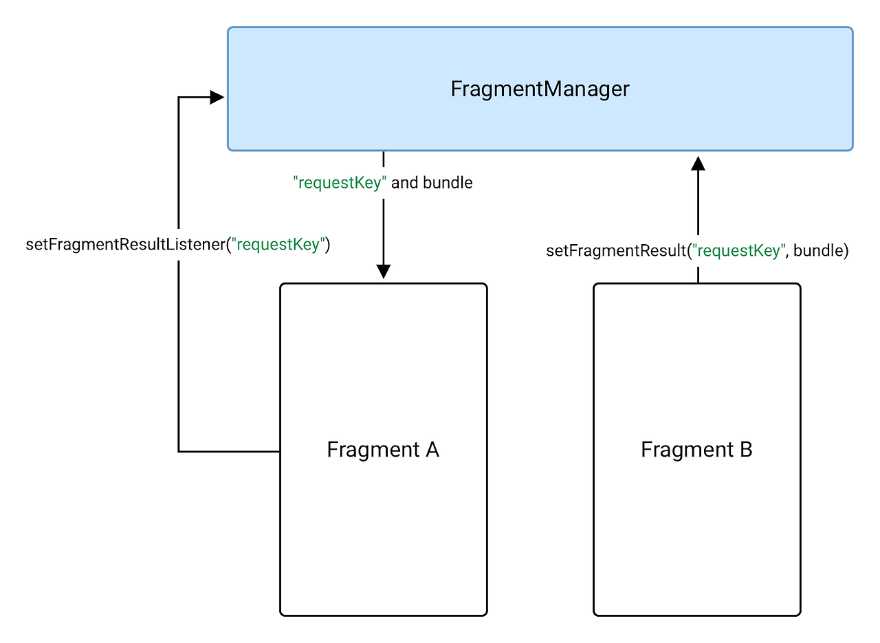setFragmentResult("requestKey", bundleOf("bundleKey" to result))