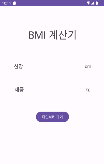 : TextView - 'BMI 계산기', '신장', '체중', 'cm', 'kg'