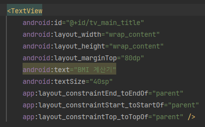 => 위 이미지의 android:id="@+id/tv_main_title" 부분이 id를 부여하는 부분이다. tv_main_title은 TextView 타입의 메인 제목을 축약해서 알기 쉽게 적은 것이다.