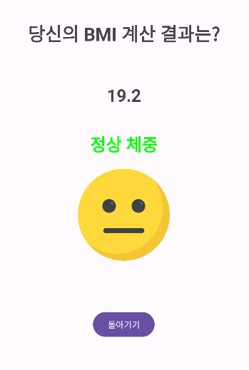 : TextView - '당신의 BMI 계산 결과는?', '19.2', '정상 체중'