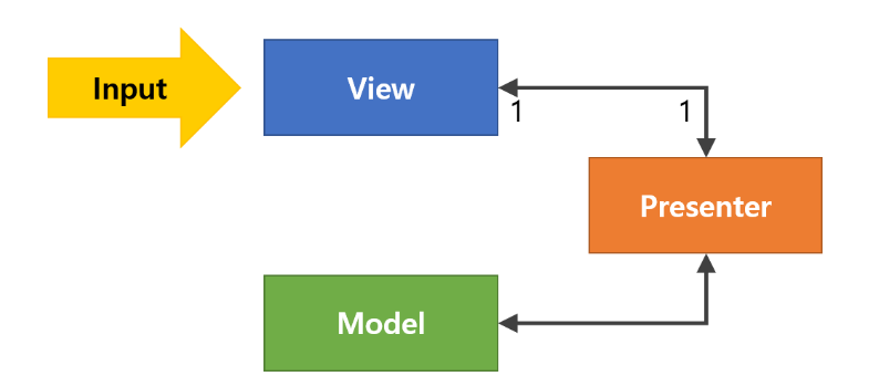 4. Presenter는 해당 View를 참조하고 있음. (View - Presenter 는 1 : 1 관계)